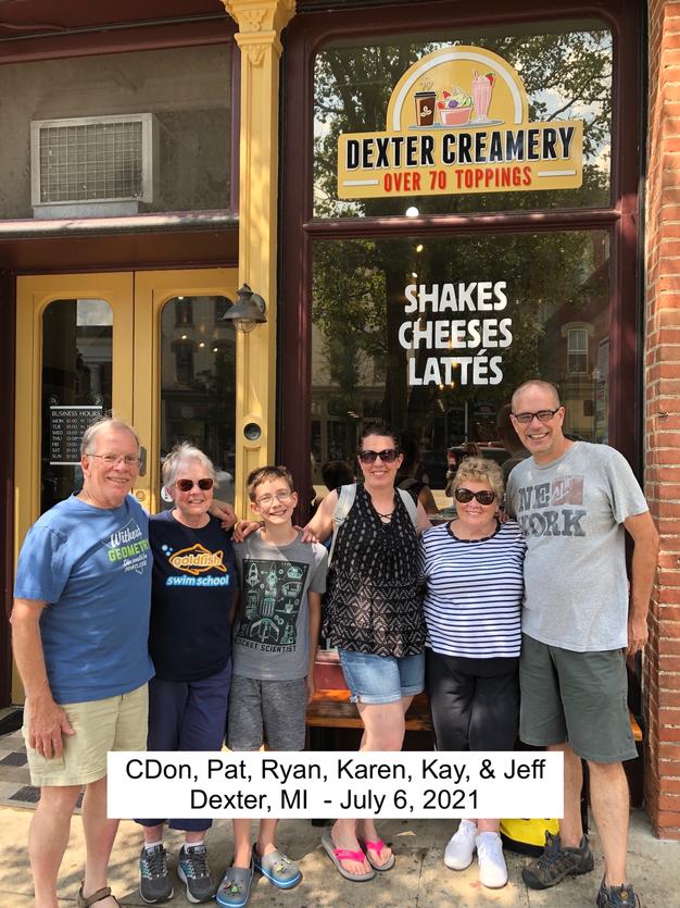 Hi Gay, Hope you are doing great and enjoying a wonderful special day. You share this birthday with my good HS buddy - John Albers, except he was born in 1944. Pat and I are staying safe and keeping warm (21 F today in Chelsea, MI) The snowblower awaits my attention to remove the 2" we got last night - very dry and fluffy, so no big deal. I attached a picture of my daughter's family and my sister Kay who visited us last July. She and my brother Ken are doing well - no COVID in our family and we are well protected. Hope you have a great day and best wishes for many more trips around the sun!